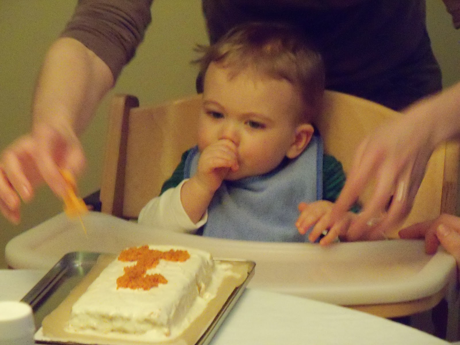 Here's our favorite 1 year old, Ansel, at his first birthday party, with a Grain Expectations sweet potato Baby Cake!